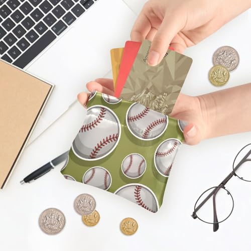 Baseball Pattern Coin Purse Leather Pouch Change Purse, Squeeze Coin Pouch for Cards, Keys & Lipsticks, Unisex 7
