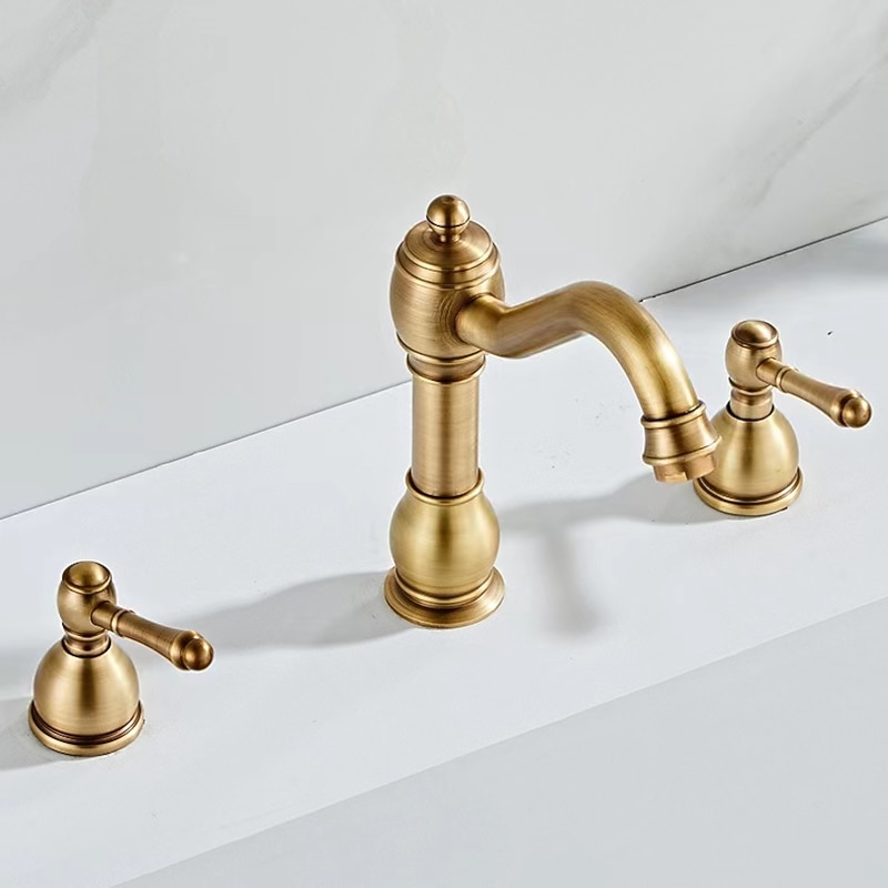 HOT ! Widespread Bathroom Sink Mixer Faucet, 360° Swivel Brass 3 Hole 2 Handle Basin Tap Deck Mounted, Washroom Basin Vessel Water Tap with Hot and Cold Hose