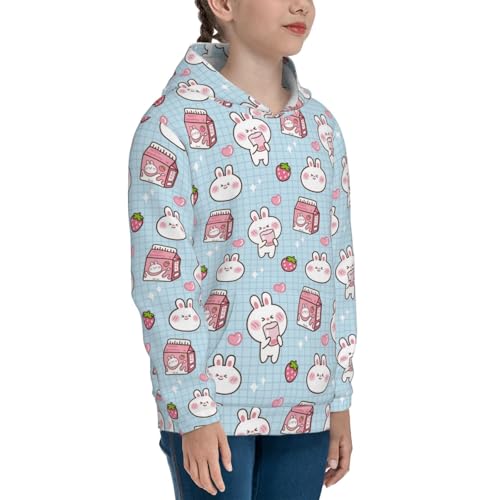Cute Rabbit with Milk Box Kid Hoodies Boys Sweatshirts Girls Pullover with Pocket 7