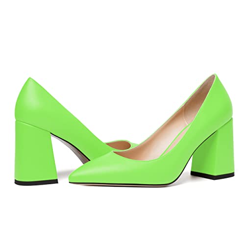 SKYSTERRY Womens Cute Pointed Toe Slip On Matte Wedding Block High Heel Pumps Shoes 3.3 Inch 5