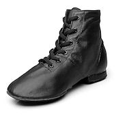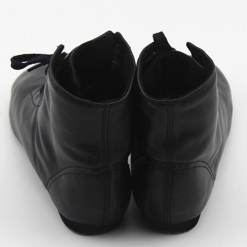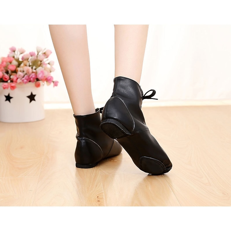 Women's Jazz Shoes Ballroom Dance Shoes Salsa Shoes Line Dance Performance Boots Split Sole Soft Flat Heel Lace-up Elastic Black