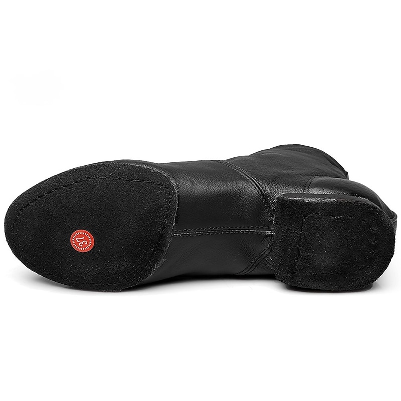 The boots feature a modern split sole design and soft, flat heel, providing maximum stability and balance without compromising on comfort. The simple yet elegant style makes them suitable for a variety of dance disciplines, including jazz, ballroom, and salsa, appealing to both male and female dancers.