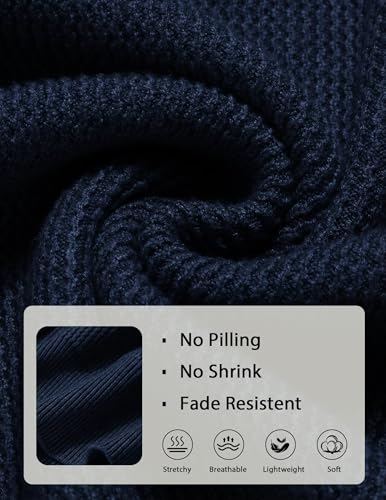 COOFANDY Men's Long Sleeve Polo Sweater Casual Light V Neck Sweater Cable Knit Pullover Polo Golf Sweaters Navy Blue 6