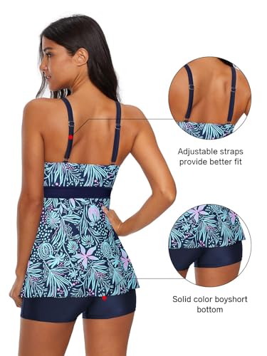 Century Star Womens Athletic 2025 Swimsuits for Women Two Piece Tankini with High Waisted Boyshorts Floral Bathing Suits 3