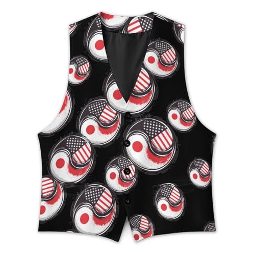America & Japan Flag Yin-yang Men's Suit Vest Waistcoat Vests Formal Dress with 2 Pockets for Business Casual Tuxedo