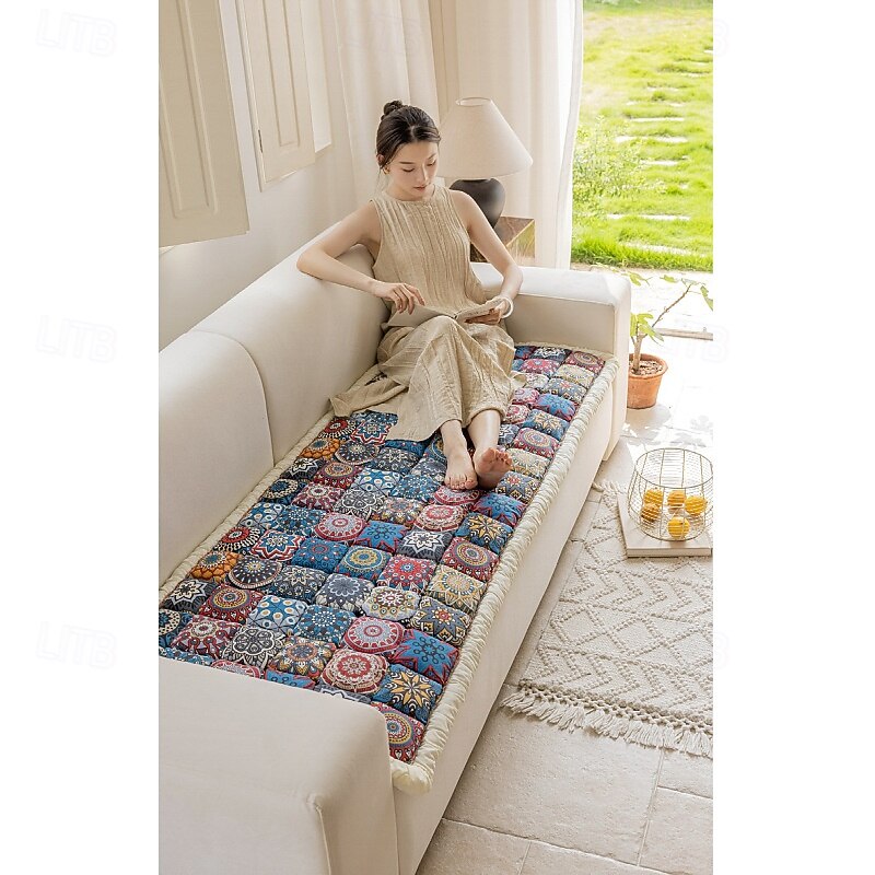 HOT ! Bohemian Sofa Cushion Cover, All Cotton Sofa Cushion Fabric, Suitable For All Seasons, High Elasticity, Full Cotton Seat Cushion, Anti Slip Pets Friendly