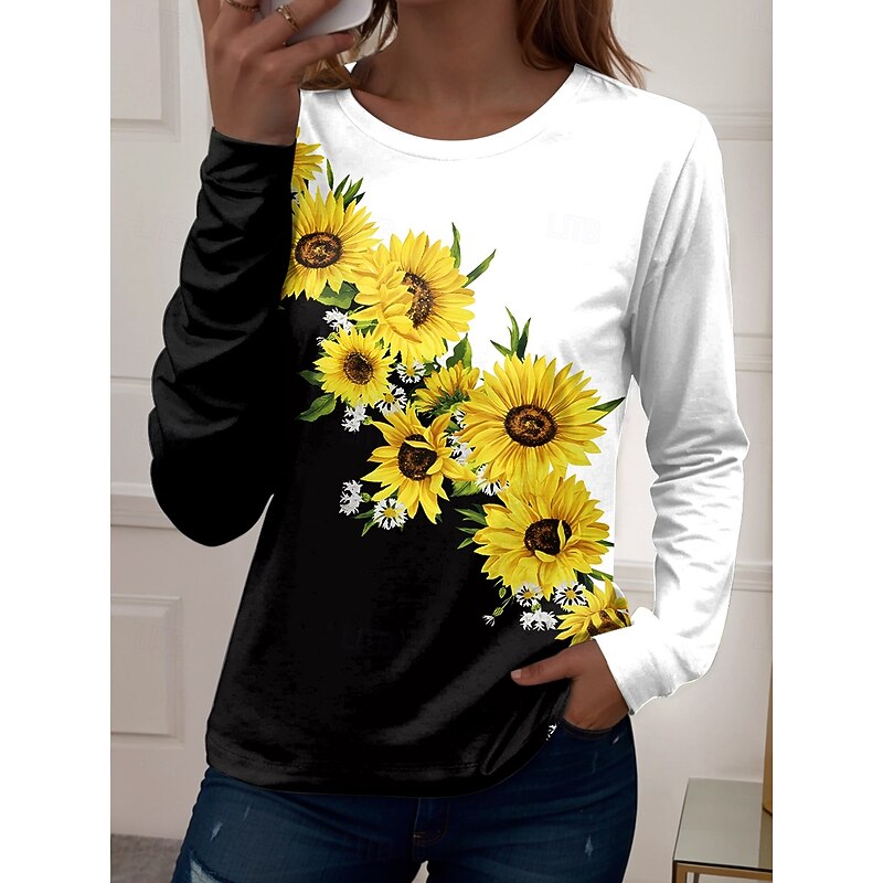More information about Women's T shirt Long Sleeve Crew Neck Long Sleeve Tunic Graphic Geometric Vintage Casual Regular Tops Daily Print Yellow Blue Purple Green Spring Fall Prefall