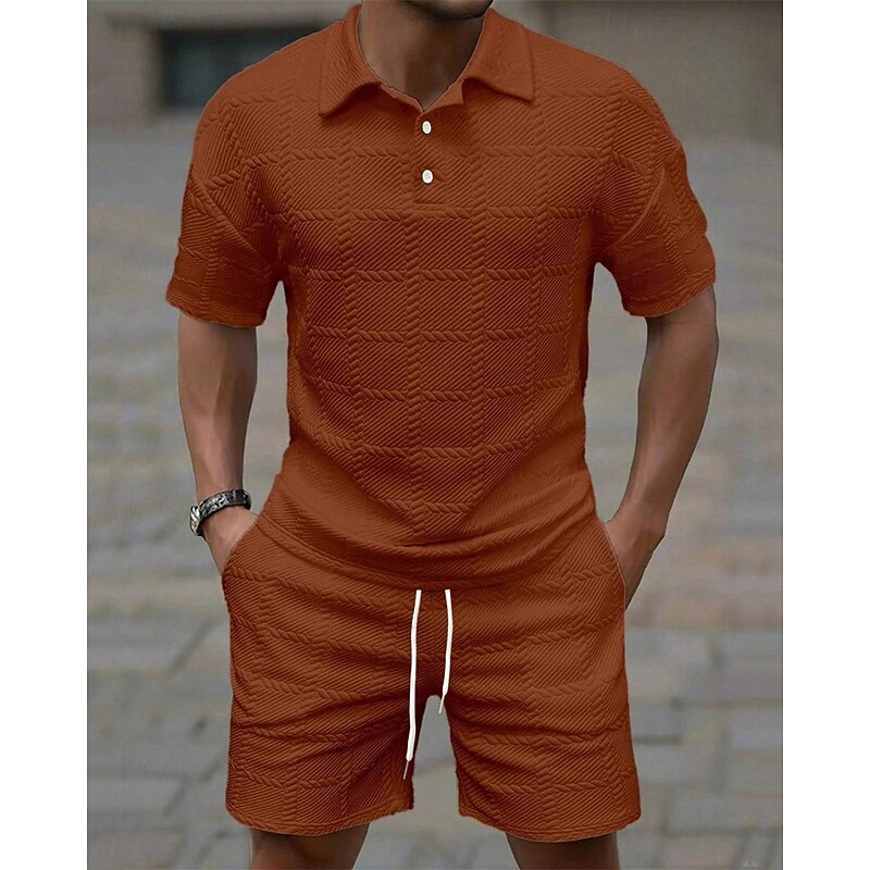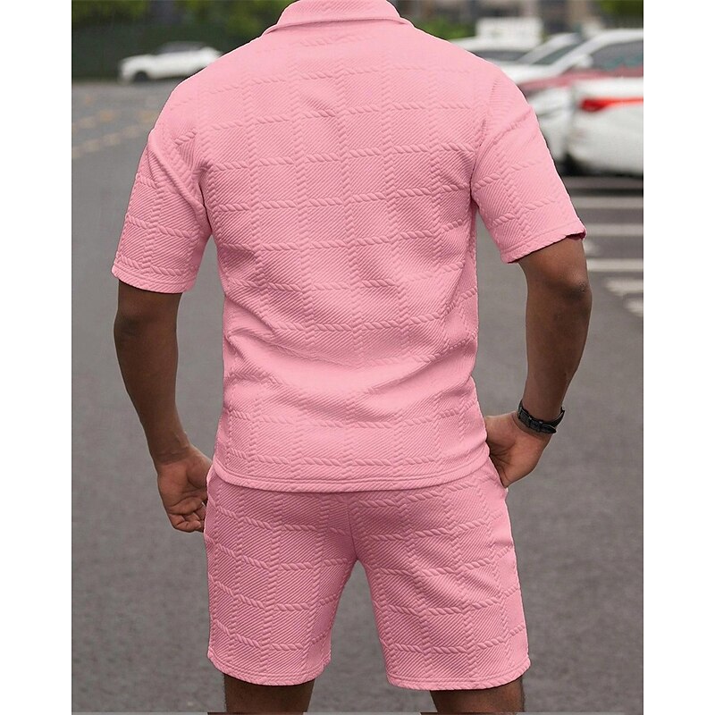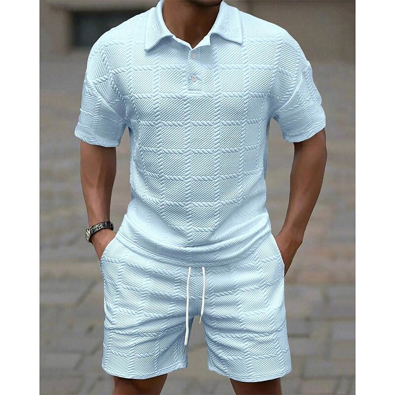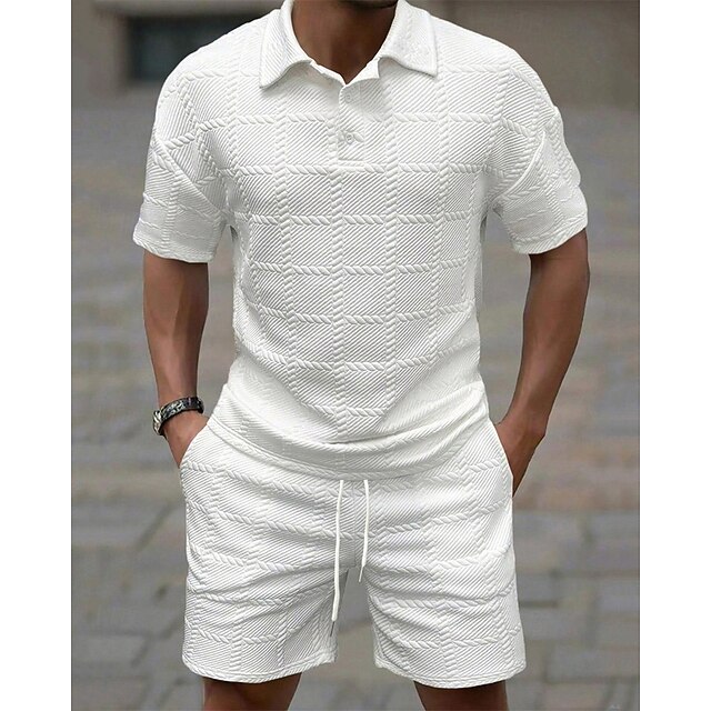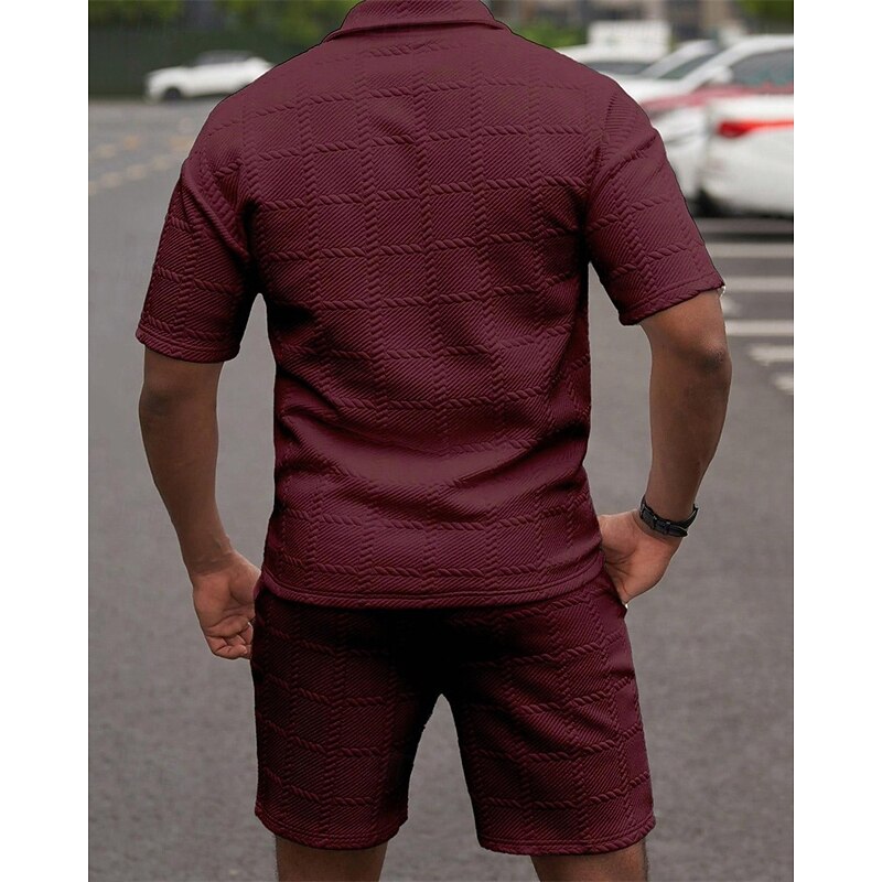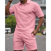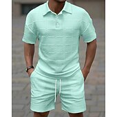 More information about Men's Golf Shirt Golf Polos Shirts Work Casual Lapel Short Sleeve Basic Modern Plain 2 Piece Jacquard Summer Regular Fit Wine Black White Dark Red Pink sky blue Golf Shirt