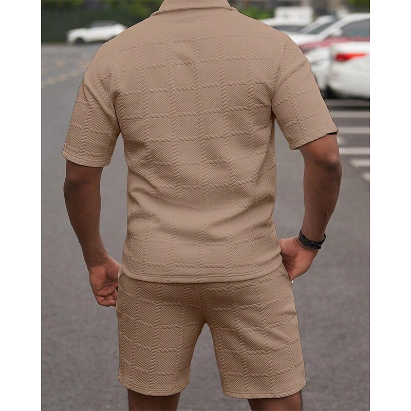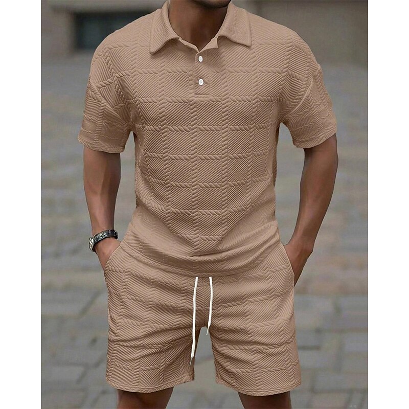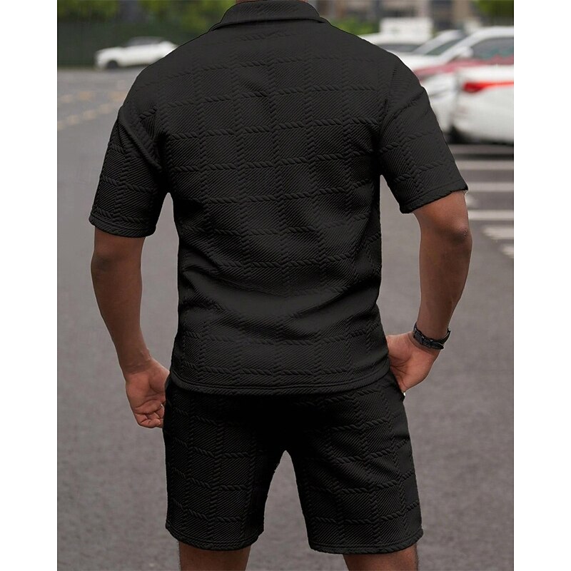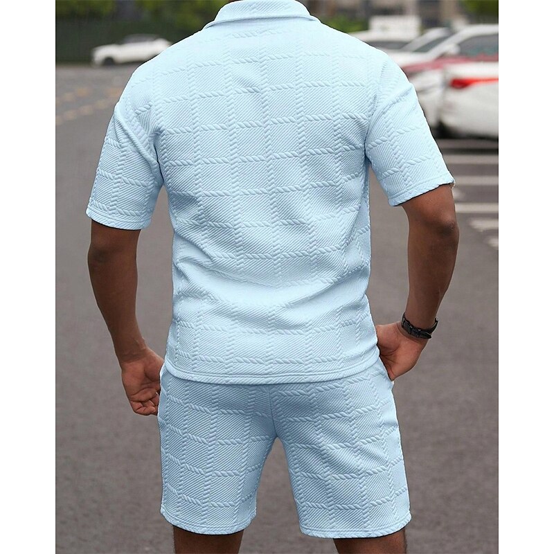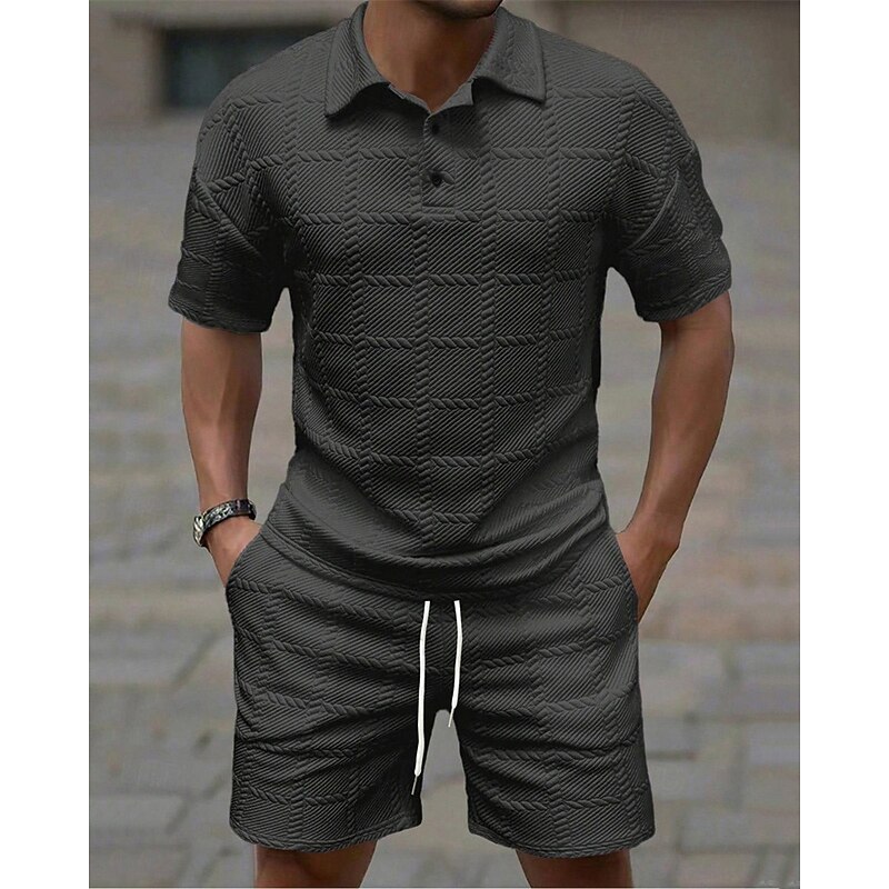 More information about Men's Golf Shirt Golf Polos Shirts Work Casual Lapel Short Sleeve Basic Modern Plain 2 Piece Jacquard Summer Regular Fit Wine Black White Dark Red Pink sky blue Golf Shirt