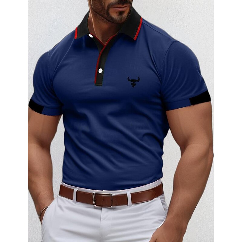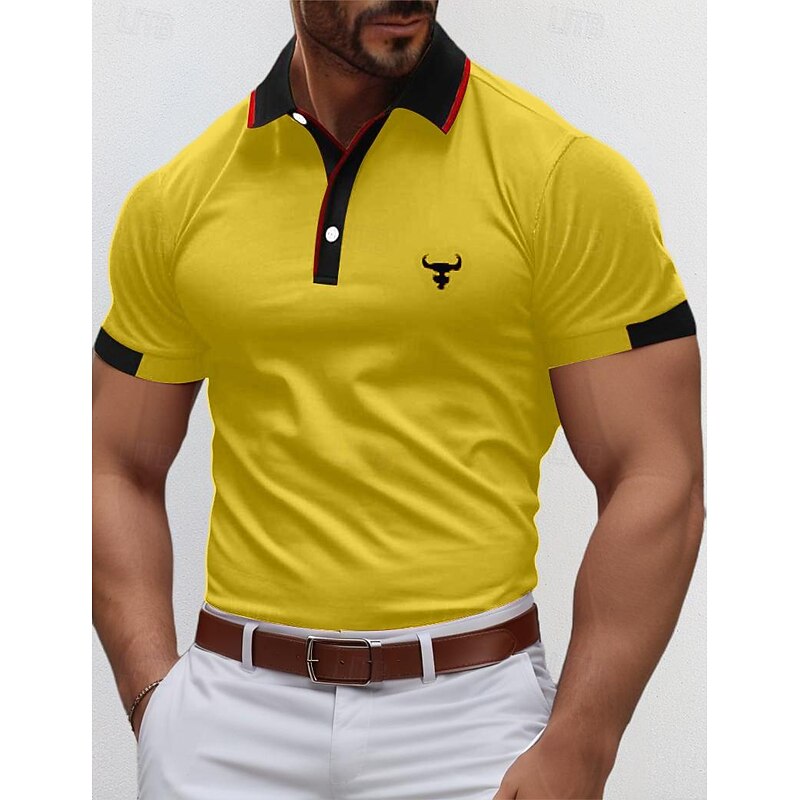 More information about Men's Polo Shirts Golf Shirt Casual Sports Ribbed Polo Collar Short Sleeve Fashion Basic Color Block Cow Patchwork Embroidered Summer Regular Fit Yellow Red Blue Green Polo Shirts