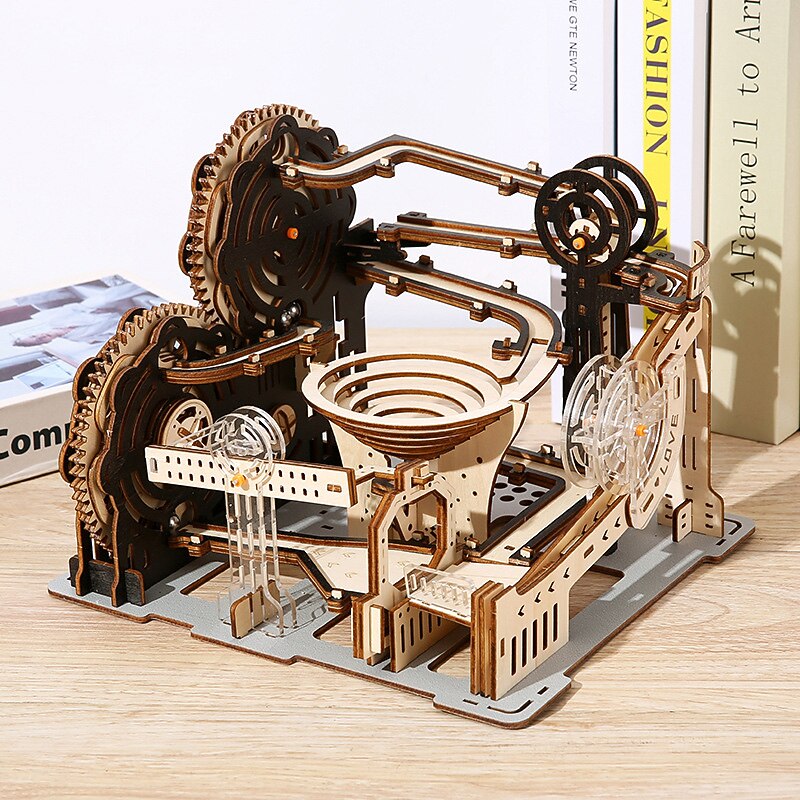 3D Wooden Puzzle Marble Run Set DIY Mechanical Track Electric Manual Model Building Block Kits Assembly Toy Gift for Teens Adult 1