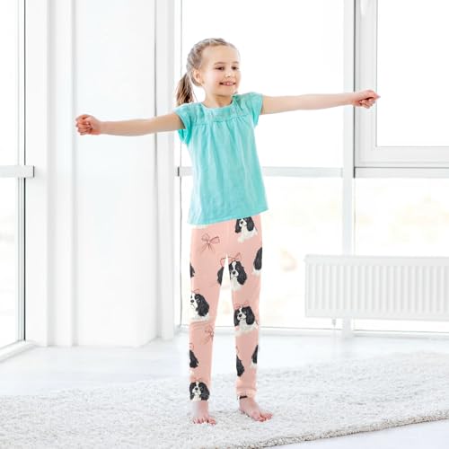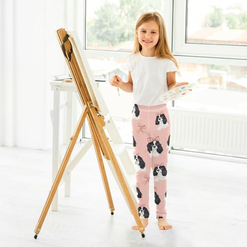 Wusikd Cute Dogs Girls' Leggings Toddler Doodles Pink Bows Kids Yoga Pants Dance Active Tights 4T 7