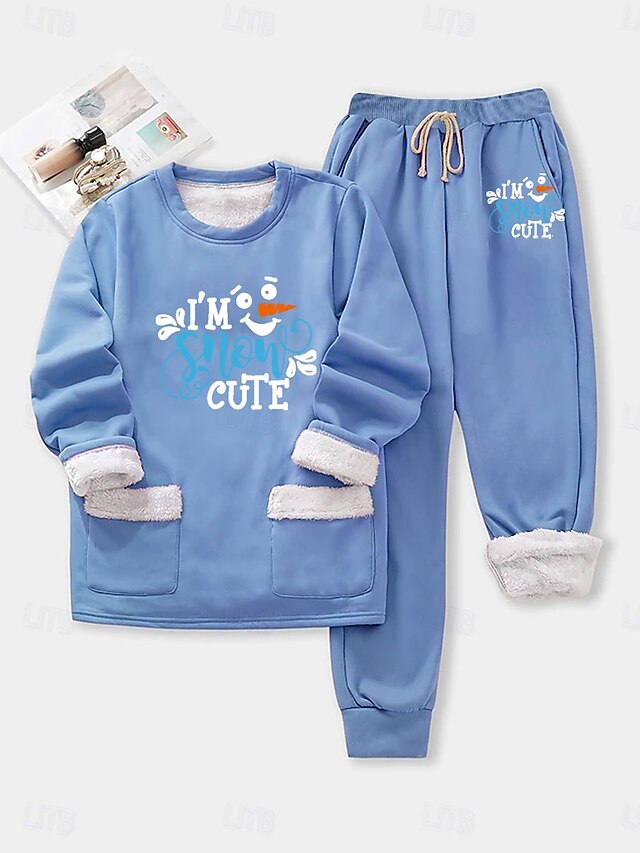 Women's Warm Daily Two Piece Sets Tracksuit Pants Sets Long Sleeve Crew Neck Graphic Letter Drawstring Print Casual Daily Black Pink Blue Fall Loose Fit 3