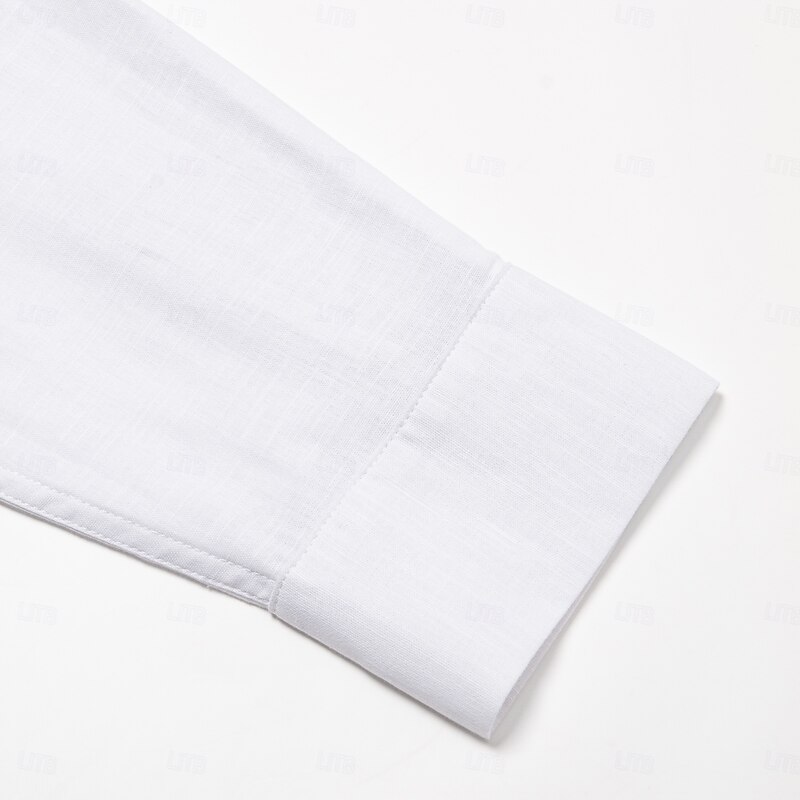 More information about Men's Cotton Linen Shirt White Light Blue Long Sleeve Solid Color Shirt Collar School Formal Buttons Clothing Apparel Elegant Vacation Vintage Tropical
