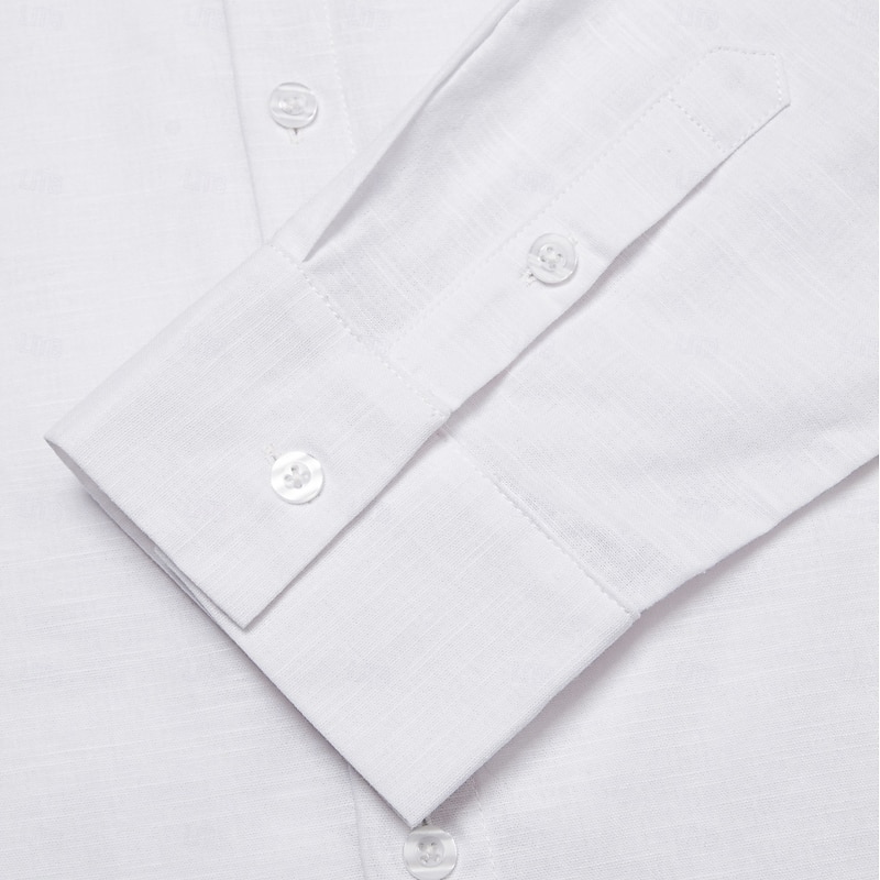 Men's Cotton Linen Shirt White Light Blue Long Sleeve Solid Color Shirt Collar School Formal Buttons Clothing Apparel Elegant Vacation Vintage Tropical 15