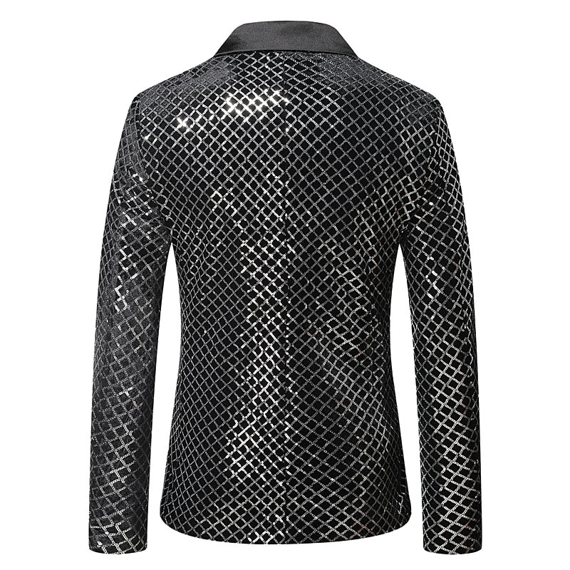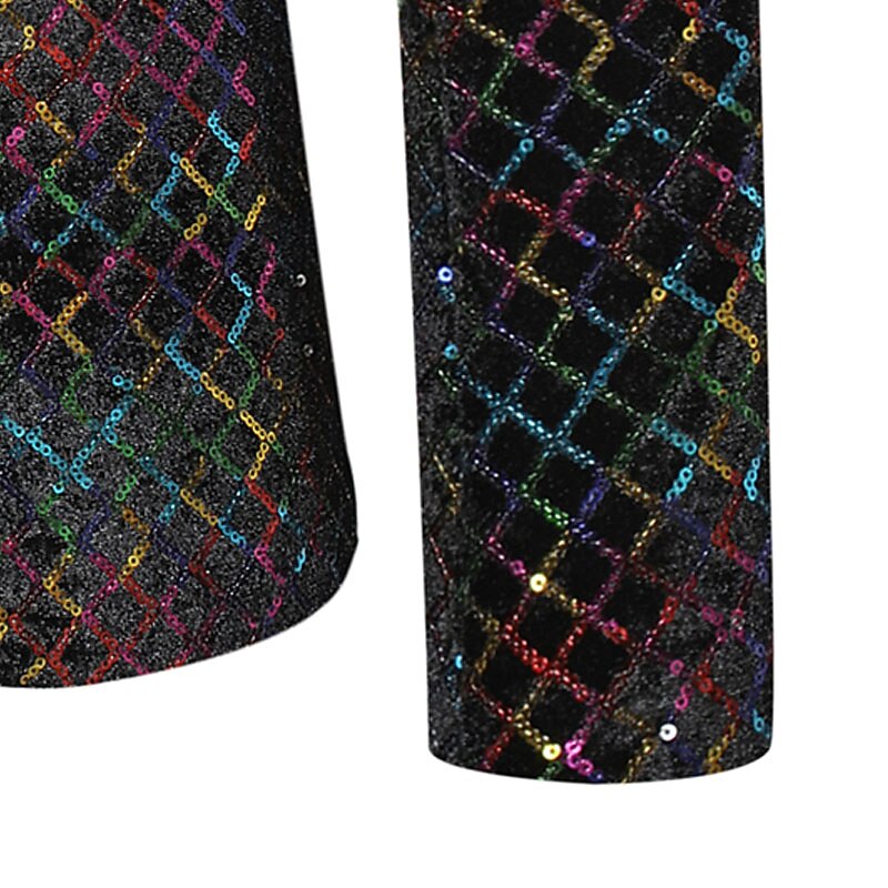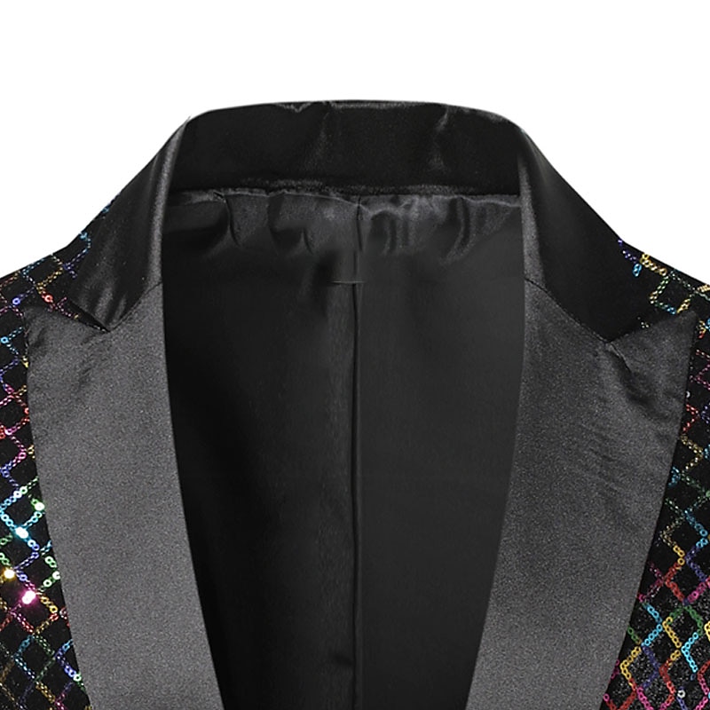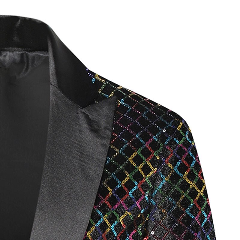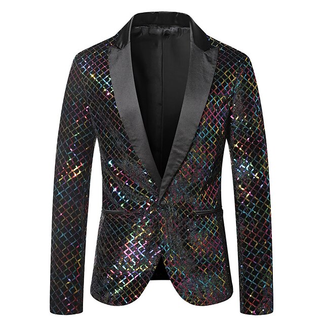 More information about Men's Blazer Party Office & Career Shining Outdoor Pocket Sequin Fall Winter Plaid Stylish Warm Ups Lapel Silvery Gold Rainbow Jacket