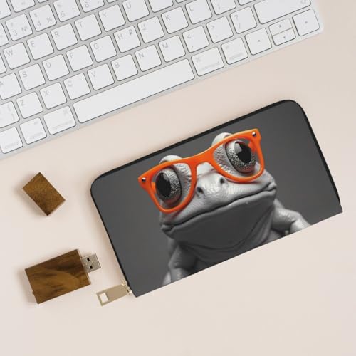 Wallet Women - Cute Glasses Frog Print Leather Wallet for Women with Zipper, Cute Bifold Long Ladies Wallets 1