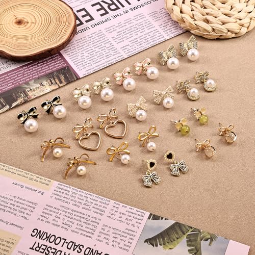 More information about 12 Pairs of Women's Bow Earrings Pearl Rhinestone Drop Dangle Earrings Dainty Trendy Earrings Wedding Party Jewelry Gifts