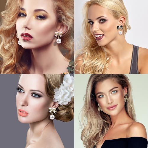 12 Pairs of Women's Bow Earrings Pearl Rhinestone Drop Dangle Earrings Dainty Trendy Earrings Wedding Party Jewelry Gifts 4