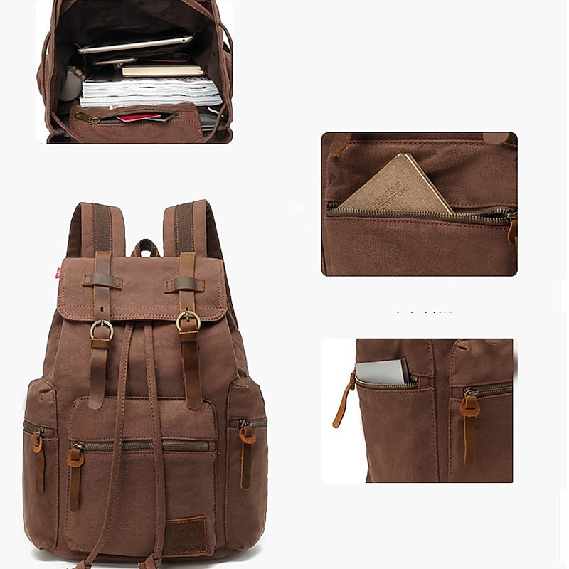 Men's Vintage Canvas Backpack with Leather Straps and Drawstring Closure – Durable Travel Rucksack for Hiking, School, or Daily Use 11