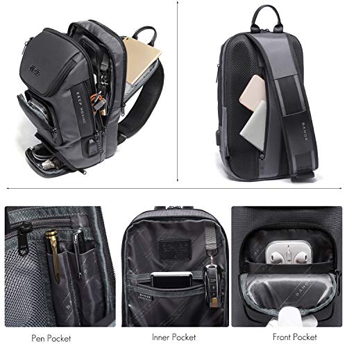 Sling Chest Bag Men Business Shoulder Crossbody Backpack fit 9.7 inch Tablet Large Casual Daypack for Outdoor Travel Work Hiking Running Indoor Activities Durable Polyester Gray 5