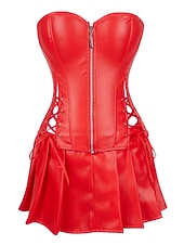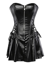 Highlights [Fabric] This Women's Shapewear Corset is crafted from high-quality polyester, offering breathability and a micro-elastic fit that ensures comfort throughout wear. The fabric resembles faux leather, giving it a sleek, glossy finish that adds sophistication to any ensemble. [Silhouette] The corset features a strapless bandeau design that highlights the wearer's shoulders and enhances natural curves. Its structured bustier style offers a supportive fit, while the attached flared skirt from the hem of the corset creates a flattering and balanced silhouette. [Design Highlights] The front zip closure offers both ease of wear and an edgy look, while crisscross lace-up detailing on the sides allows for adjustable fit and added visual flair. The corset is also backless, adding a daring and modern touch to its overall design. [Occasions] Perfect for parties, nights out, or clubbing, this corset is designed to make a bold fashion statement, exuding confidence and style. Its versatility makes it suitable for various social gatherings, ensuring you stand out effortlessly. [Size Range] Available in a wide range of sizes from S to 6XL, this corset caters to diverse body types. Its inclusive sizing ensures that everyone can enjoy the comfort and style of this standout piece.