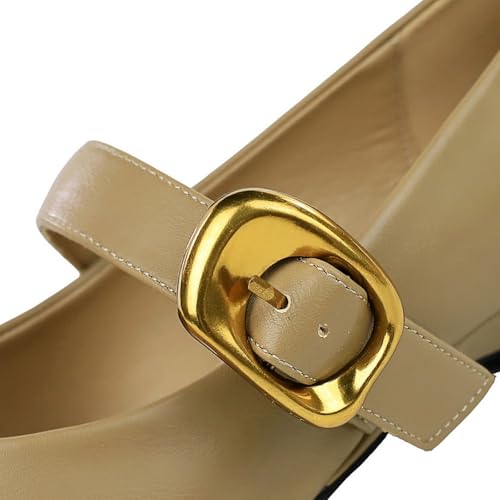 HOT ! Women's 1 Inch Pointy Toe Mary Janes Flats One Strap Buckle Cute Leather Ballet Flat Shoes for Women Low Heeled Wedge Slip On Solid Work Flats Dress Comfortable
