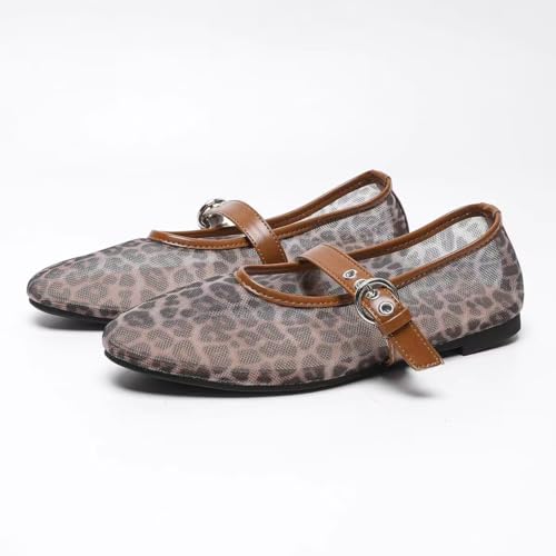 Women's Fashionable Leopard Print Mary Jane Flats, Casual Comfortable Breathable Square Toe Flat Shoes, Lightweight Comfortable Comfy Shoes for Daily Wear, Girl 5