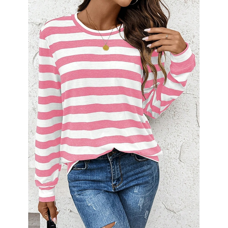 HOT ! Women's Pullover Sweatshirt Graphic Striped Casual Long Sleeve Crew Neck Regular Tops Home Street Dailywear Print Pink Summer Spring Fall Winter