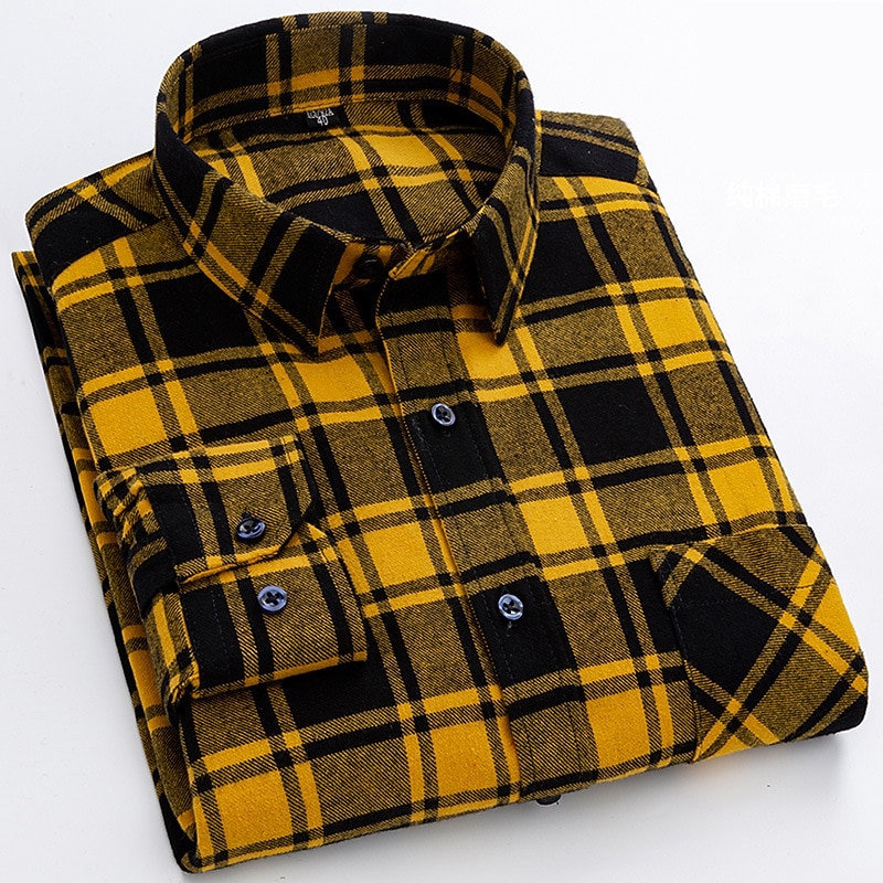 More information about Men's Shirt Casual Shirt Plaid Shirt Button Up Shirt Plaid / Check Outdoor Daily Wear Yellow Royal Blue Blue Sky Blue Long Sleeve Lapel Fall & Winter Clothing Apparel Front Pocket