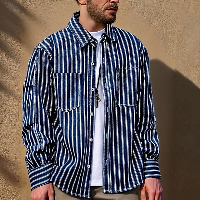 This Men's Shirt Casual Shirt Button Up Shirt Denim Shirt Black Blue Long Sleeve Stripe Lapel Vacation Holiday Pocket Clothing Apparel Polyester Fashion Casual cushy combines elegant design with practical functionality. Every detail has been carefully considered to ensure you get the best possible experience. The premium construction means this product will serve you well for years to come.