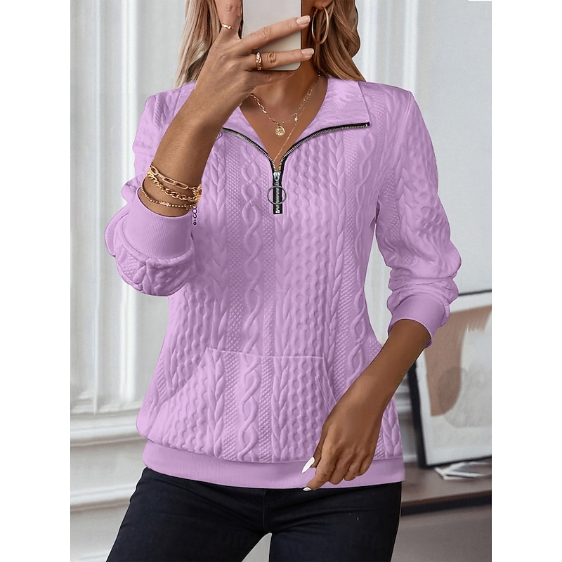 HOT ! Women's Blouse Solid Color Stylish Casual Beach Long Sleeve Shirt Collar Regular Tops Daily Zipper White Pink Blue Purple Orange Spring Fall Winter