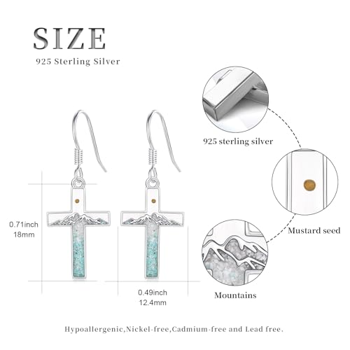 Mountain Earrings 925 Sterling Silver Turquoise Mustard Seed Dangle Drop Earrings Faith Jewelry Gifts for Women Girls 4