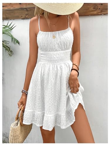 HOT ! Floerns Women's Sleeveless Backless Tiered Mini Dresses Shirred Textured Cami Dresses