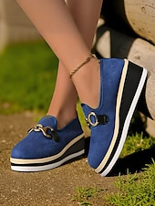 Why Choose Women's Blue Platform Loafers with Metal Buckle – sophisticated Slip-On Wedge Shoes for Casual Wear, Office and Travel?
