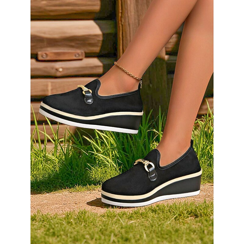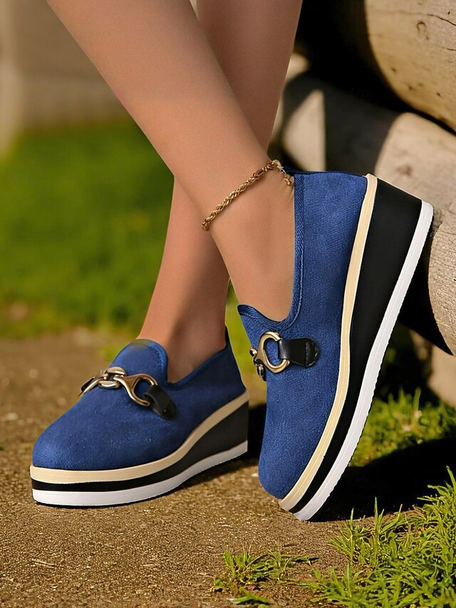 This Women's Blue Platform Loafers with Metal Buckle – fashionable Slip-On Wedge Shoes for Casual Wear, Office and Travel combines elegant design with practical functionality. Every detail has been carefully considered to ensure you get the best possible experience. The excellent construction means this product will serve you well for years to come.