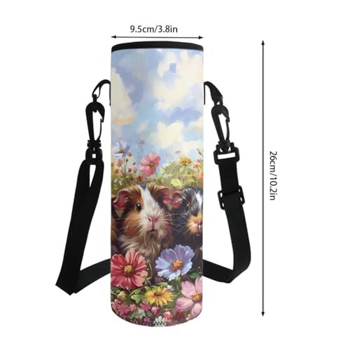 HOT ! Guinea Pig Daisy Flower Print School Backpack Set, 4pcs Kids Bookbag with Lunch Box Pencil Case and Water Bottle Holder, Lightweight Schoolbag for Elementary School Students