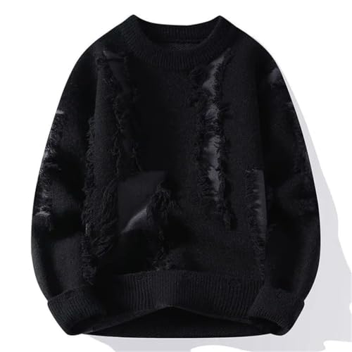 Men Personality Colorblock Hole Knitted Sweater Thick Pullover Loose Casual Warm Top for Autumn Winter 2