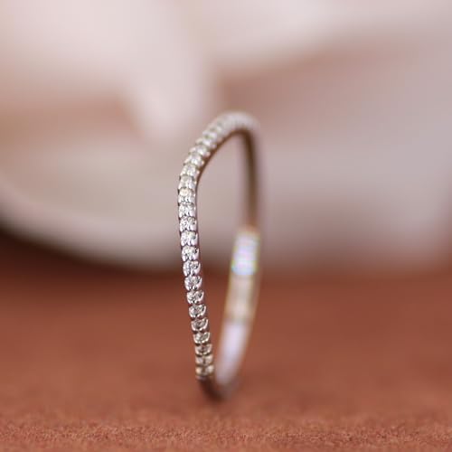 14K Gold Moissanite Wedding Bands, 1.5mm Moissanite Stacking Rings, 14K V Shaped Eternity Wedding Band 4