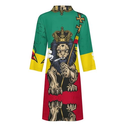 Lion Judah Smoke Mens Robe Soft Lightweight Knee Length Loungewear Spa Bathrobe Long Sleeved Nightgown 2