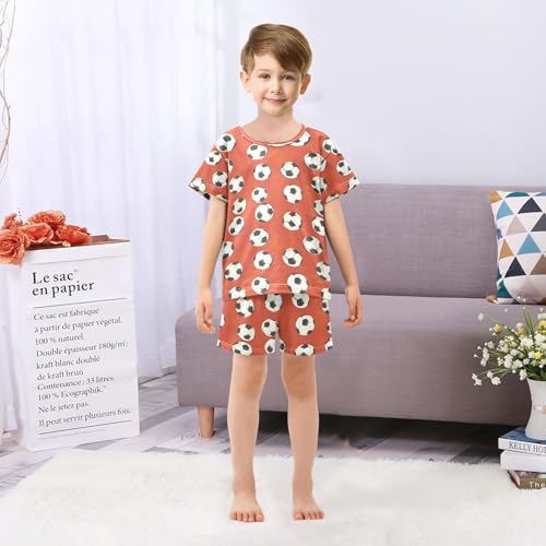 ALAZA Retro Football Soccer Red Pajamas Set Short Sleeve Cotton Sleepwear Summer Pjs 2 Piece 5-14Y 2