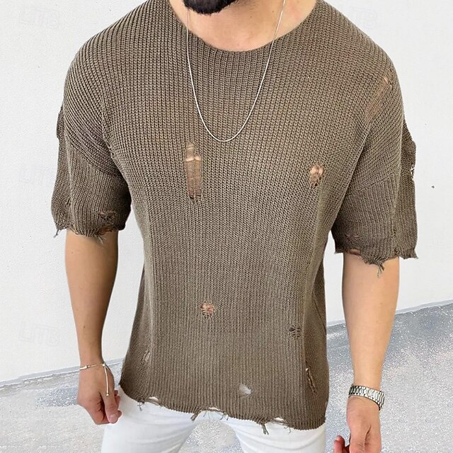 More information about Men's Pullover Sweater Jumper Knit Sweater Ribbed Knit Regular Tops Knitted Hole Plain Crew Neck Fashion Basic Vacation Daily Wear Clothing Apparel Summer Black White M L XL