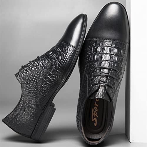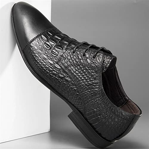HOT ! Dress Shoes for Men Lace Up Crocodile Print Derby Shoes Round Cap Toe Leather Non Slip Block Heel Anti-Slip Low Top Slip Resistant Wedding(Crocodile Print,10 M US)