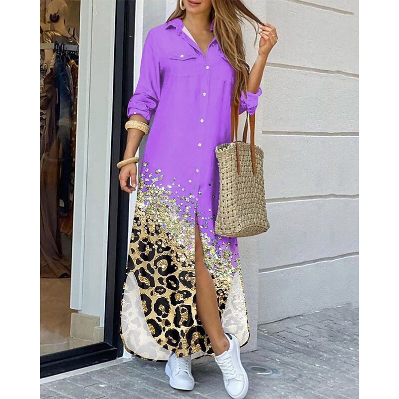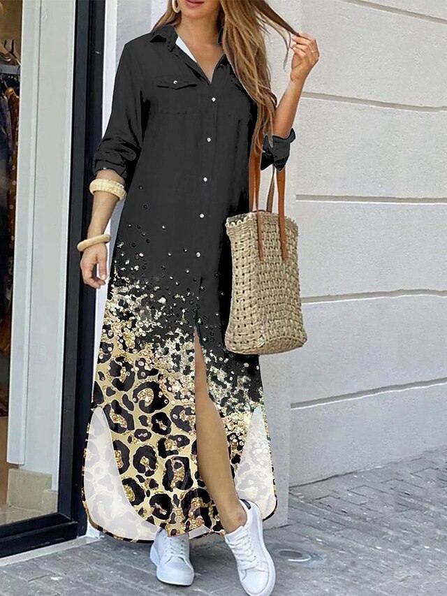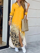 More information about Women's Long Dress Maxi Dress Shirt Dress Casual Dress Summer Dress Stylish Casual Vacation Daily Date Regular Fit Color Block Long Sleeve Lapel Black Yellow Pink Red Summer Spring