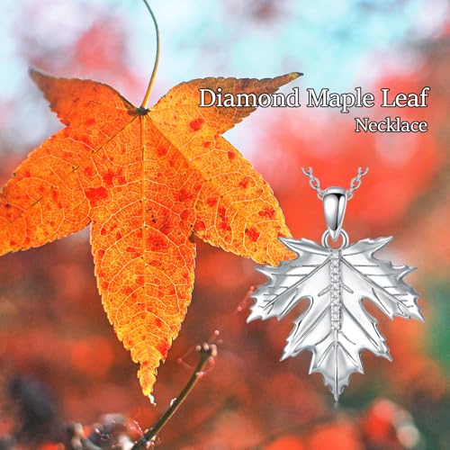 Diamond Maple Leaf Necklace for Women 925 Sterling Silver Leaf Necklace for Mother Daughter Grandmother Wife 18+2Inch 6