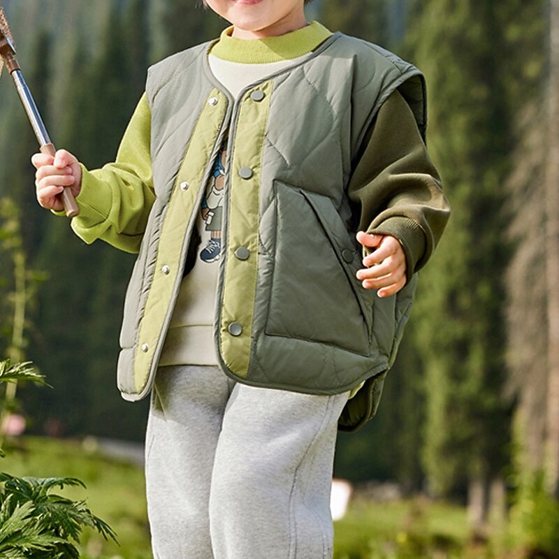 Why Choose Kids Unisex Vest Coat Outerwear Color Block Sleeveless Buttons Keep comfortable velvety Breathable Coat Outdoor Fashion Daily Green Fall Winter 4 years+?
