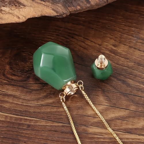 • 14K Yellow Gold Natural Stone Vial Necklace For Women - Glass Vial Pendant Necklace Water Drop Jar Perfume Necklace - Water Container Vial Necklaces For Liquid Oil Diffuser Vial Jewelry;