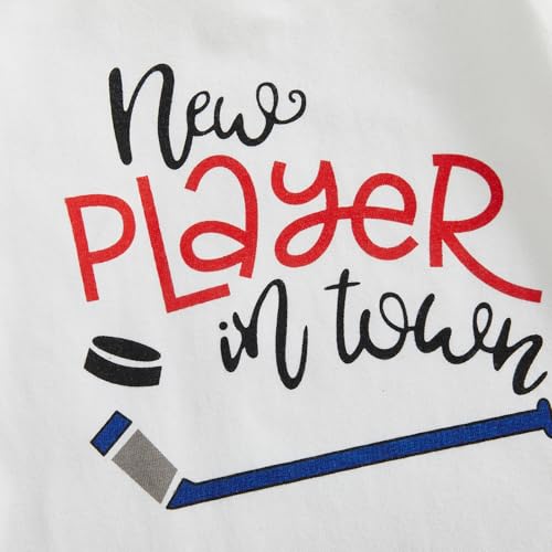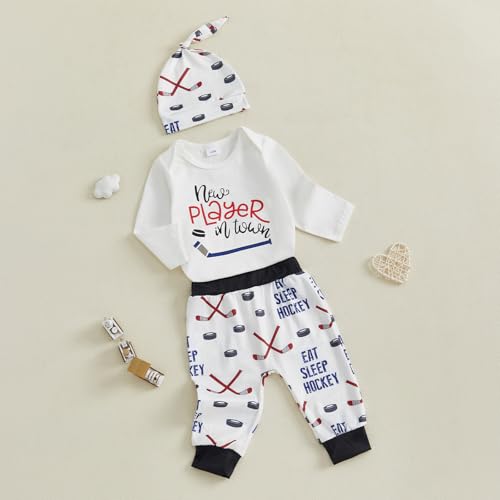 • Design: Adorable newborn baby boy coming home outfit fall, crew neck, new player in town letter print, long sleeve bodysuit tops, elastic waist pants and a hat. Stylish hockey themed baby boy clothes, you can't go wrong with this little cute outfit