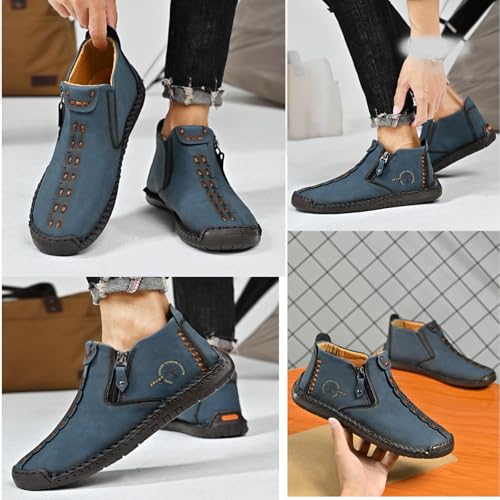 • Side Zipper Design:Ankle boots men the side zipper design allows for easy on and off and looks simple fashionable.The widened toe design gives your feet more space.Simple and stylish ankle boots leather