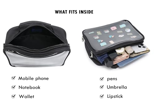 • 𝗦𝗧𝗥𝗨𝗖𝗧𝗨𝗥𝗘: This pins bag have a main big pocket and have a inside pocket. A outside zipper pocket and a clear pocket. Come with an ita bag insert. The square shaped clear window is great for enmal pins, brooches, badges, buttons, stickers and small aesthetic items you don't want to lose.